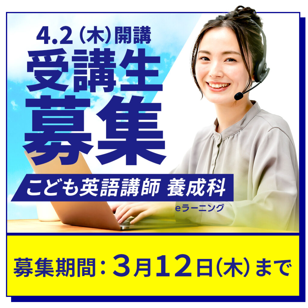 2月20日から全国ハローワークにて4月2日開講「こども英語講師養成科(eラーニングA)」の募集が始まりました。